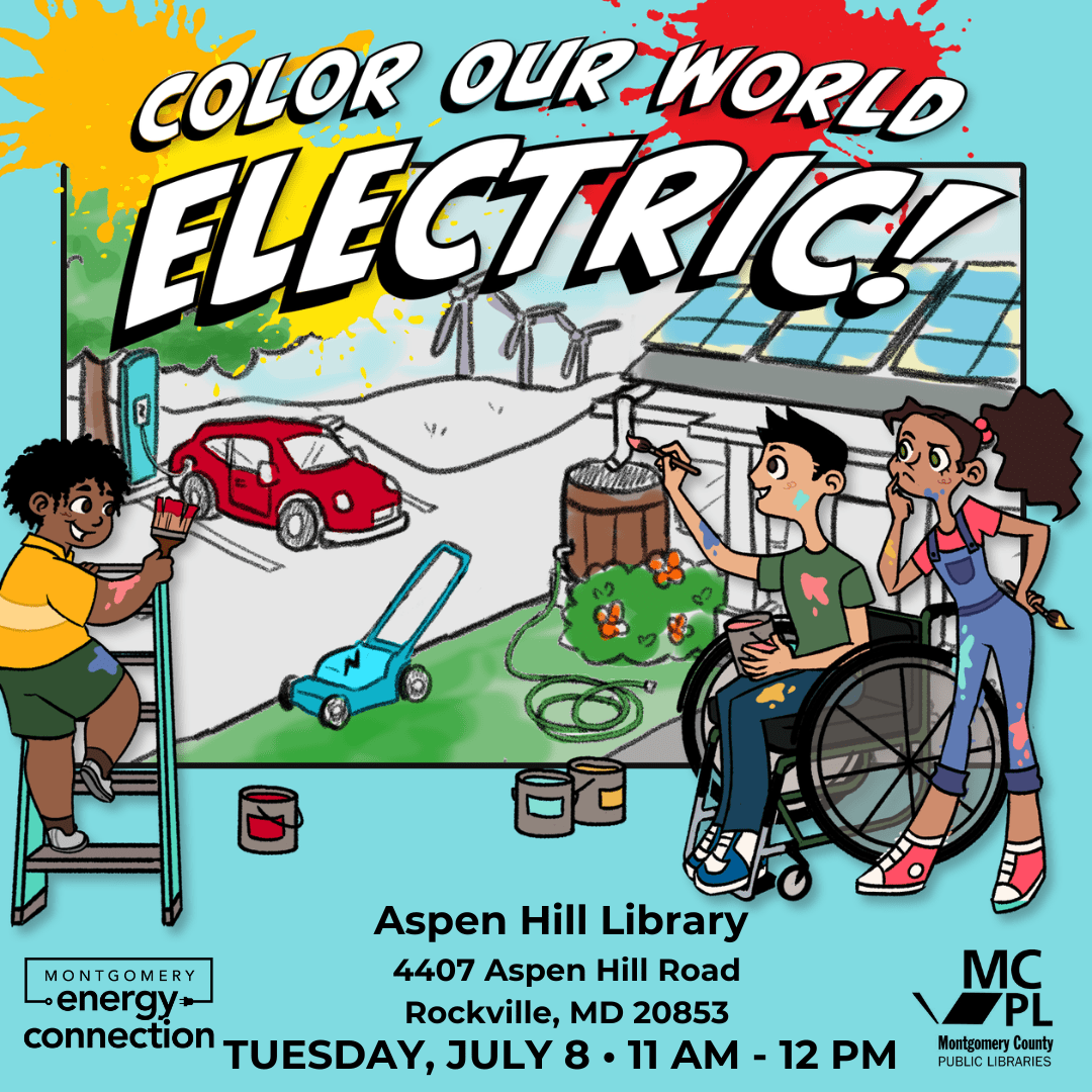 Join us for “Powering a Colorful World” where we’ll explore how electric vehicles and smart home devices make our world cleaner and more colorful.  Energy Express is a summer event where kids and families learn about energy usage. A partnership between the Department of Environmental Protection, Nature Forward, and Montgomery County Public Libraries, these interactive […]